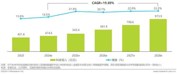 金融市场的繁荣与科技行业的飞速发展共同推动国内金融科技市场规模持续走高,预计将以约13.3%的复合增长率于2028年突破6500亿元