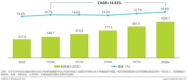 保险市场的繁荣推动保险科技应用的协同发展,投入规模预计将以14.83%的复合增长率于2028年突破1000亿元