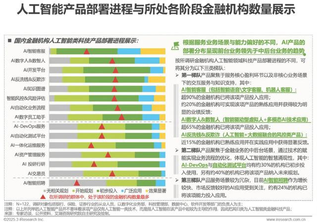 人工智能类金融科技产品的部署进程与其服务的业务场景类型密切相关交互服务与知识支持类AI产品的应用更为普及
