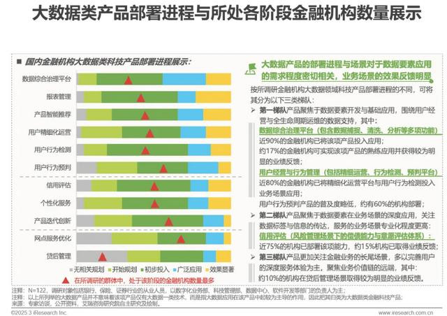 以流程管理与用户服务为核心,大数据类科技产品在国内金融行业的实践范围更广泛,多项应用已获得较为显著的业绩反馈